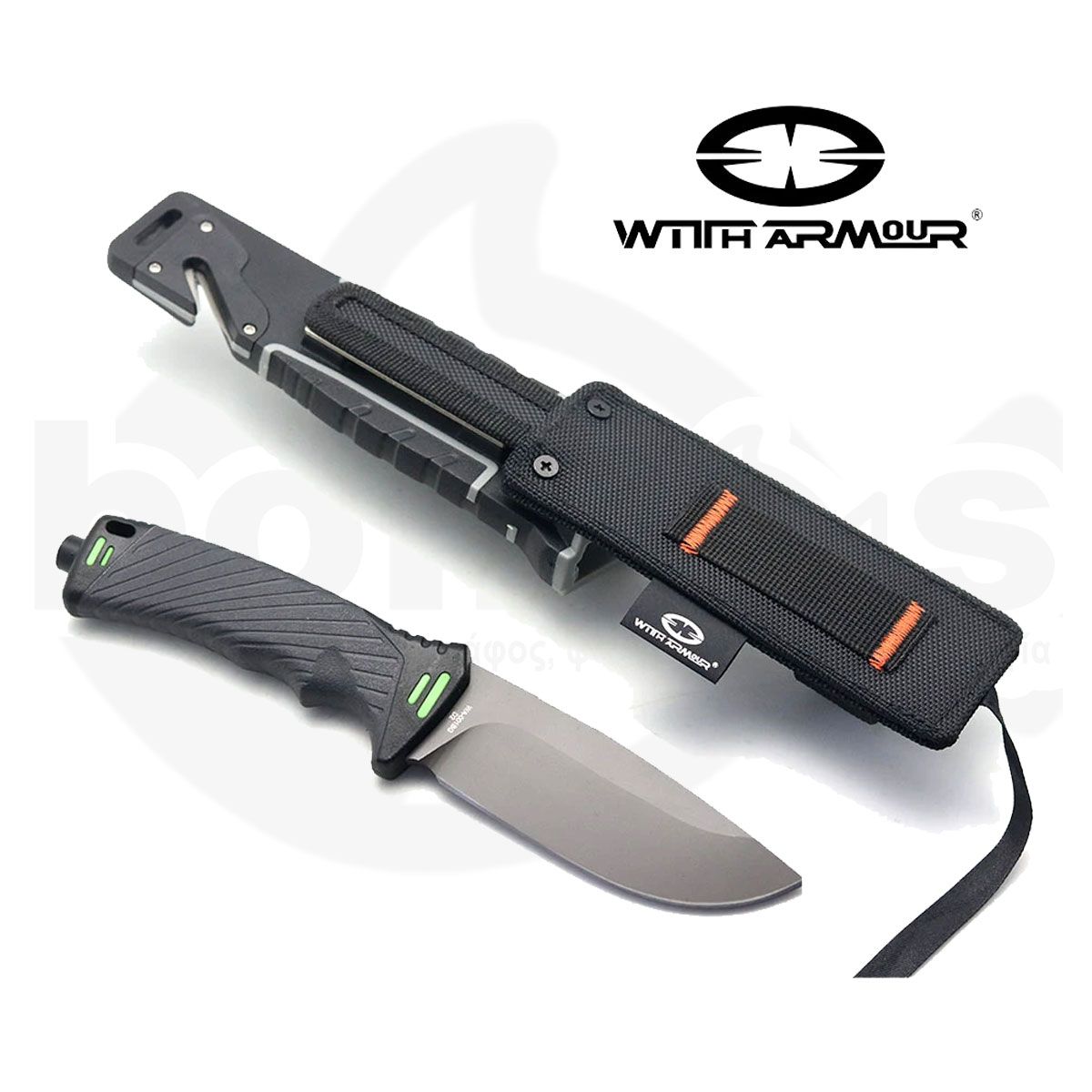 Το επιχειρησιακό αυτό μαχαίρι “Bravedge” της εταιρίας WithArmour θα γίνει ο καλύτερος σας φίλος στο κάμπινγκ και σε όλες σας τις εξορμήσεις στην φύση. Ο σχεδιασμός αυτού του μαχαιριού το καθιστά κατάλληλο για κάθε περίπτωση. Η λεπίδα του είναι κατασκευασμένη από ανοξείδωτο ατσάλι υψηλής αντοχής 440C και είναι πολύ καλά στερεοποιημένη στην λαβή αυξάνοντας την αντίσταση σε οποιαδήποτε βαρύ φορτίο. Η λαβή του που είναι εξοπλισμένη με ακίδα θραύσης κρυστάλλων, είναι κατασκευασμένη από θερμοπλαστικό ABS γνωστό για την άνεση και την ανθεκτικότητα του. Η συσκευασία περιλαμβάνει άκαμπτη θήκη, σπινθηριστή, ακόνι λάμας και κόπτη ζώνης.
