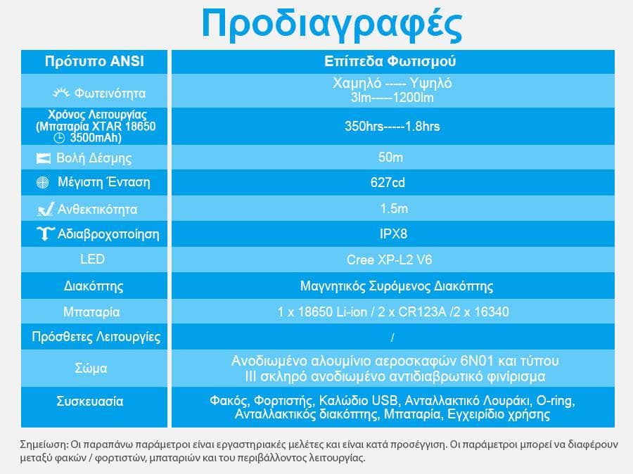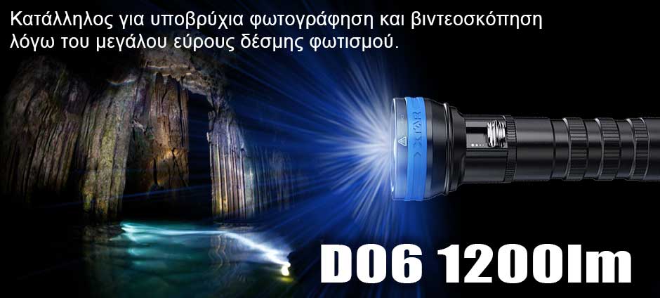 Το ιδανικό πακέτο για τους λάτρεις του βυθού, αφού εκτός από τον πανίσχυρο XTAR D06 ισχύος 1200 Lumens, περιλαμβάνει μπαταρία λιθίου 3500mAh και μονό φορτιστή με καλώδιο USB.